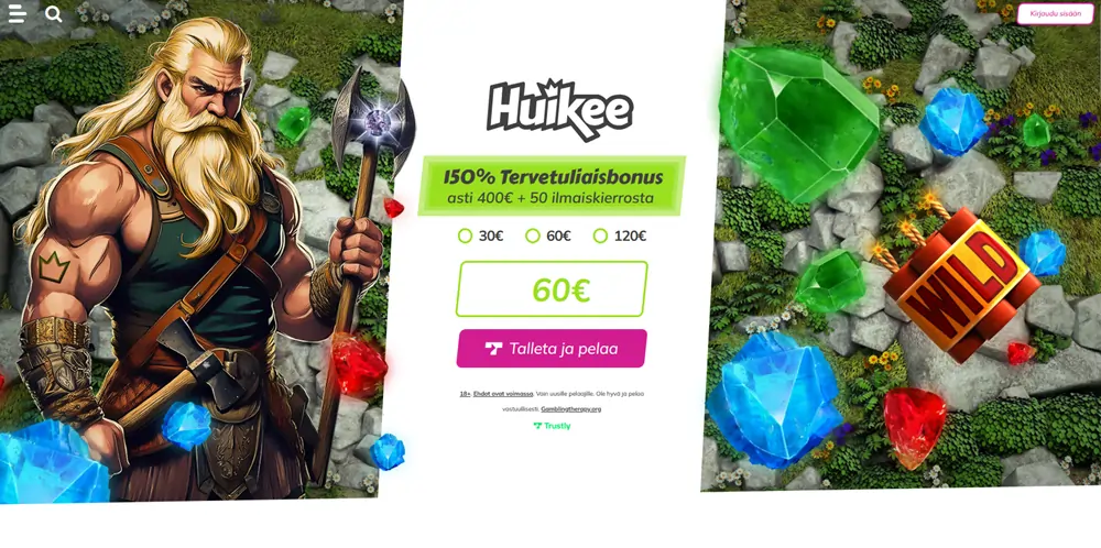 Huikee kasino kuuluu parhaat pikakasinot -osastoon, tarjoamalla selkeän käyttöliittymän, nopeat kotiutukset, laadukkaan pelivalikoiman ja reilun tervetuliaisbonuksen.