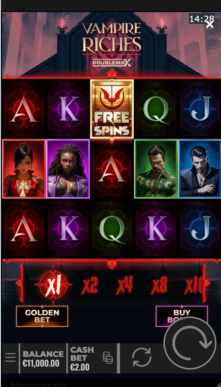 Vampire Riches Doublemax on Yggdrasilin vampyyri-teemainen kolikkopeli, täydellinen halloween-kaudelle. Siinä on viisi rullaa ja kolme riviä ja voittotapoja on 243. Nauti ominaisuuksista, kuten Wild Symbol, Dropdown Wins, Doublemax, Golden Bet, Free Spins, ja Bonus Buy, kun pyörittelet keloja tavoitellen jopa massiivista 25 000 kertaa panoksesi voittoa.